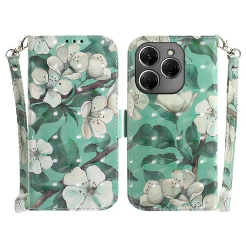 Funda de Cuero para Tecno Spark 20 Pro con Tapa Horizontal y Diseño 3D Flor de Acuarela