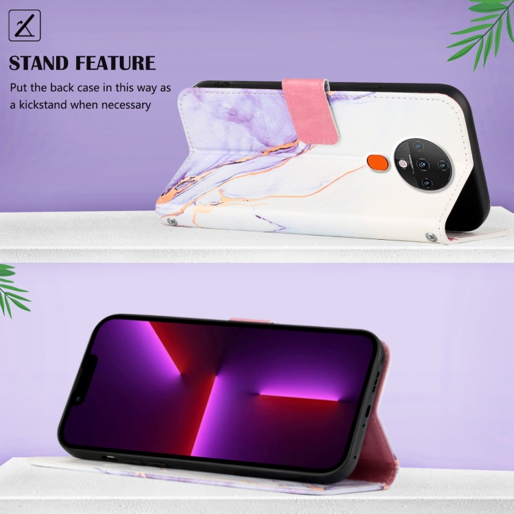 Funda Telefónica para Tecno Spark 6 Pt003 con Flip Cuero y Patrón Mármol (Blanco Púrpura)