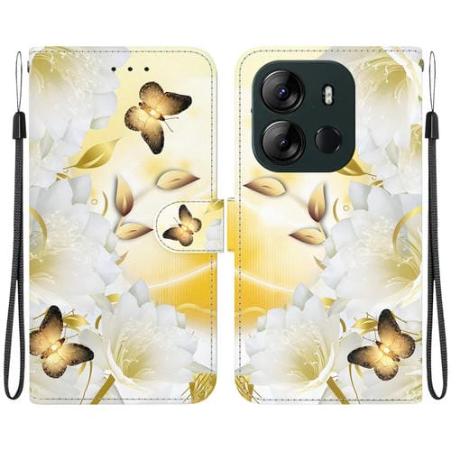 Funda de Cuero para Tecno Spark Go 2023 y Pop 7 Pro con Dibujo Coloreado y Textura de Cristal (Epiphyllum de Mariposa Dorada)
