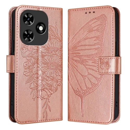 Funda para Tecno Spark Go 2024 / Spark 20C de Cuero con Mariposa en Relieve (Oro Rosa)