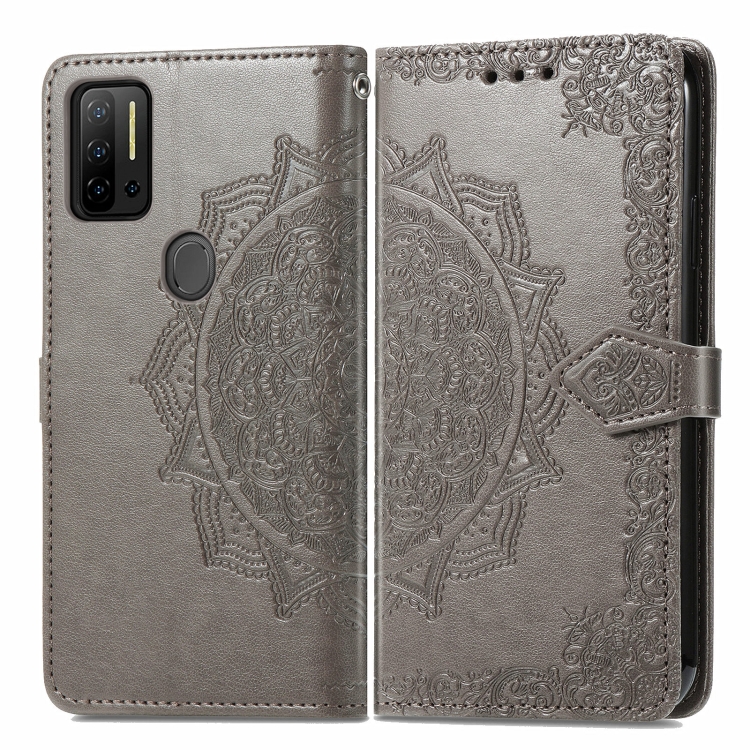 Funda de Cuero Horizontal para Ulefone Note 11 Plus Mandala Flower con Soporte, Ranura para Tarjeta y Cordón (Gris)