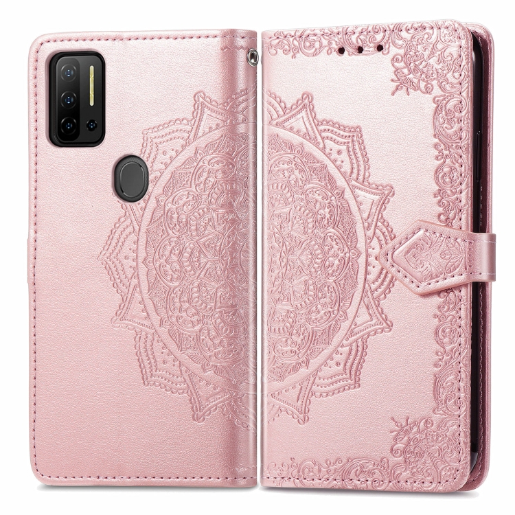 Funda de Cuero Horizontal para Ulefone Note 11 Plus Mandala Flower con Soporte, Ranura para Tarjeta y Cordón (Oro Rosa)