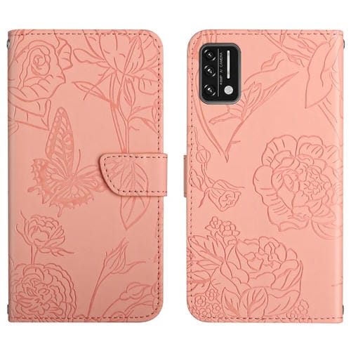 Funda de Cuero En Relieve para Umidigi A7S Siente la Piel Mariposa Peony (Rosa)