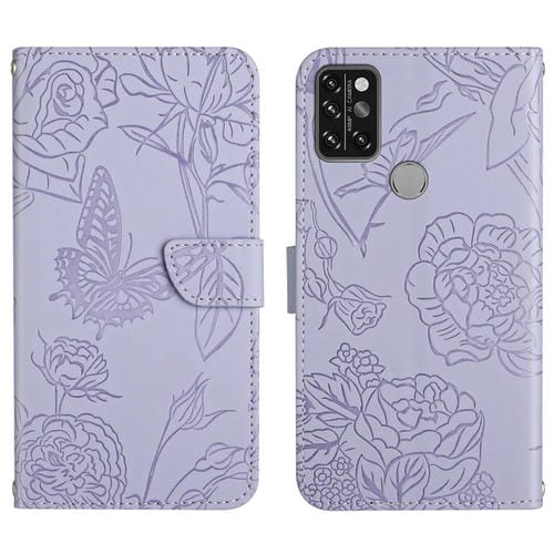 Funda de Cuero En Relieve para Umidigi A9 Pro Siente la Piel de la Mariposa (Púrpura)