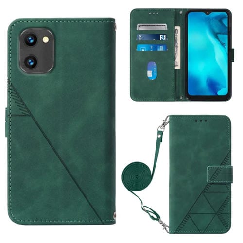 Funda Flip de Cuero 3D en Relieve para Umidigi C1 Crossbody (Verde Oscuro)