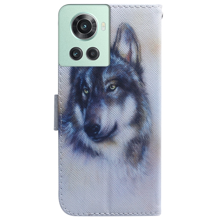 Caja de Cuero para OnePlus 10R / Ace con Dibujo Lobo Blanco (Blanco)
