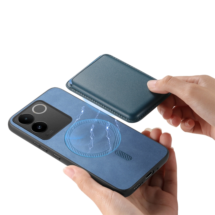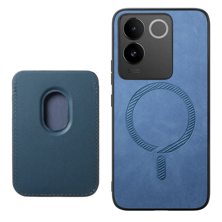 Para Vivo Iqoo 11 Pro 5G Retro Magsafe Card Bag Pu Funda para Teléfono con Contraportada (Azul)