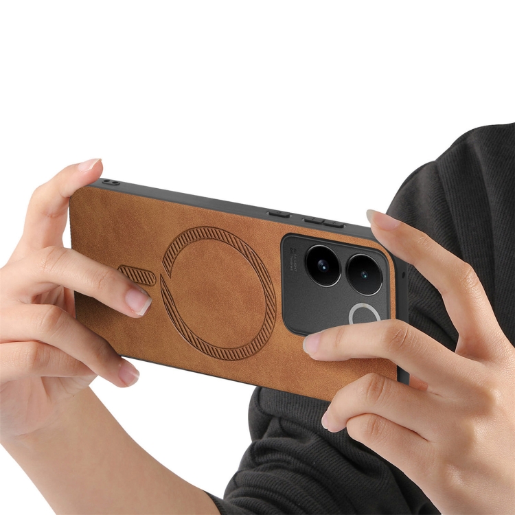 Para Vivo Iqoo 12 5G Retro Magsafe Funda para Teléfono con Contraportada Magnética de Pu (Marrón)