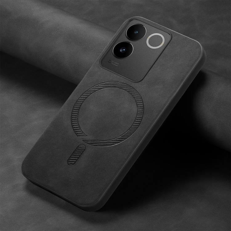 Para Vivo Iqoo 12 5G Retro Magsafe Funda para Teléfono con Contraportada Magnética de Pu (Negro)