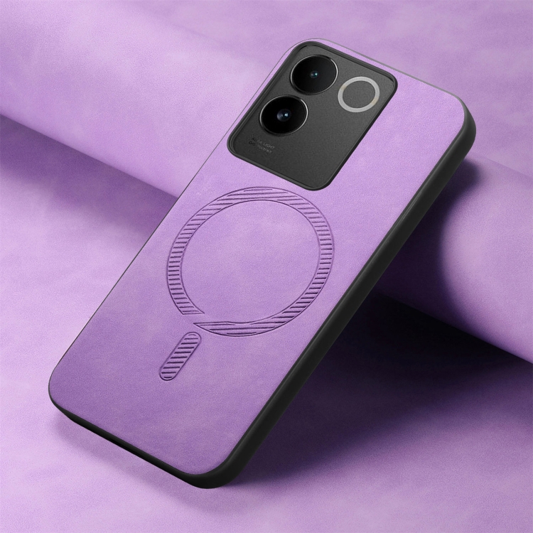 Para Vivo Iqoo 12 5G Retro Magsafe Funda para Teléfono con Contraportada Magnética de Pu (Púrpura)