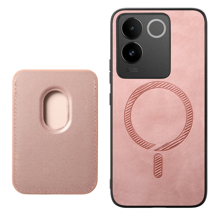 Para Vivo Iqoo 12 Pro 5G Retro Magsafe Card Bag Pu Funda para Teléfono con Contraportada (Rosa)
