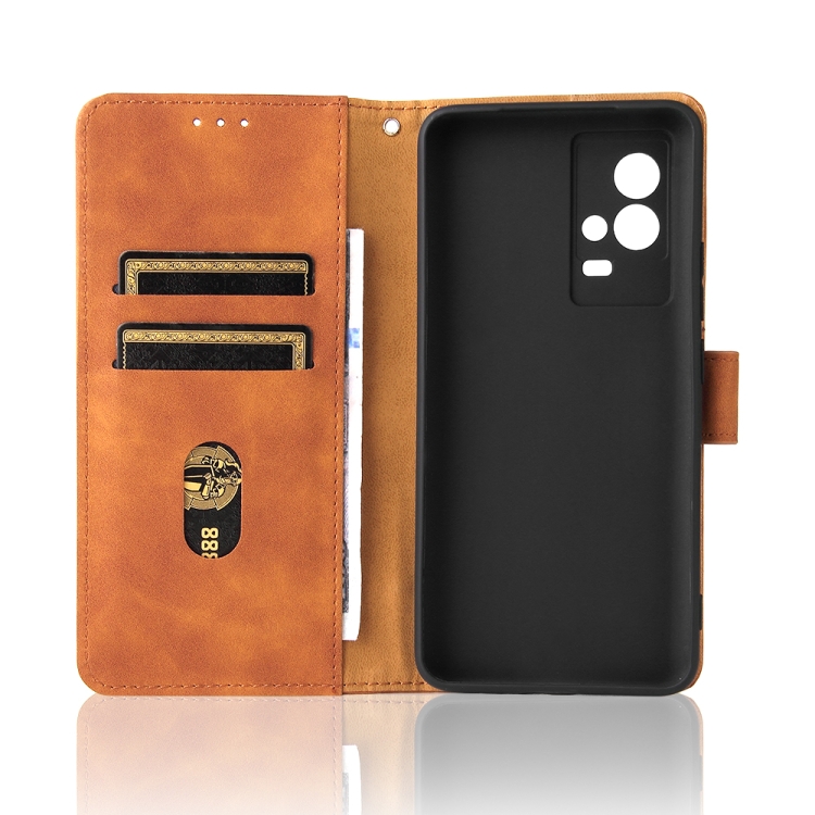 Para Vivo Iqoo 8 Color Solida Sienta la Hebilla Magnética Caja de Cuero de la Pu de la Textura de la Textura de la Carne de Becerro Horizontal con El Soporte y Las Ranuras y la Cartera (Marrón)