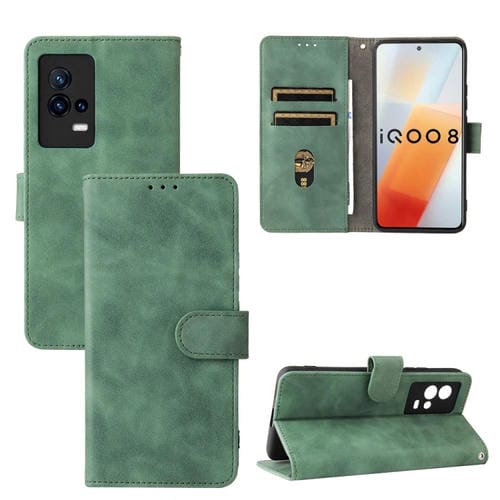 Para Vivo Iqoo 8 Color Solida Siente la Piel Magnética Hebilla Horizontal Flip Texture Textura Pu Funda de Cuero con Soporte y Ranuras para Tarjetas (Verde)
