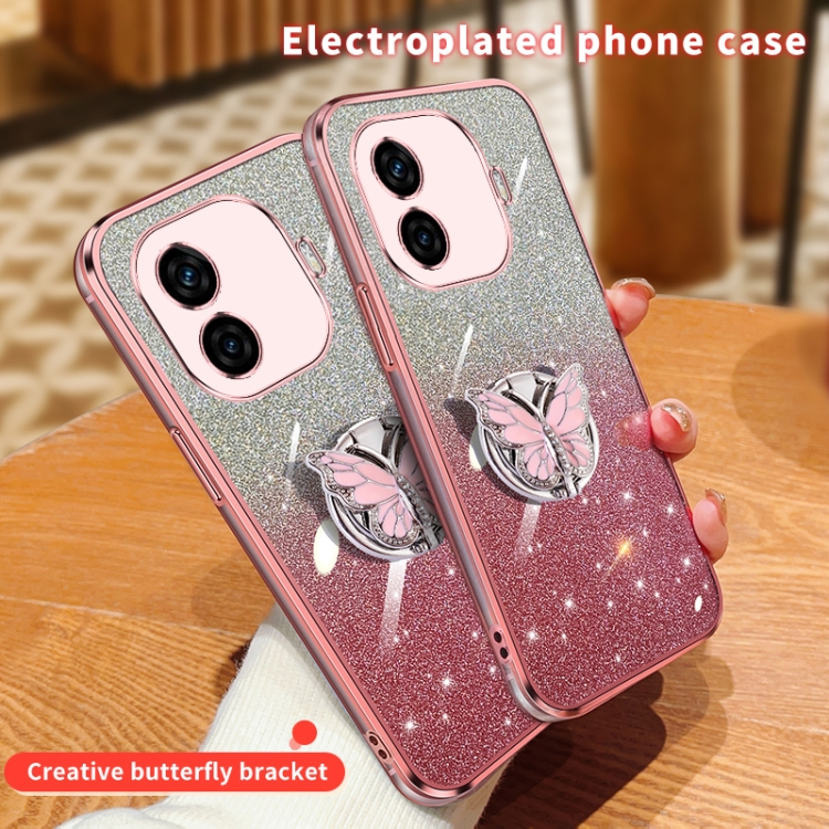 Para Vivo Iqoo Neo Z9 Funda para Teléfono de TPU con Soporte de Mariposa con Brillo Degradado Plateado (Negro)