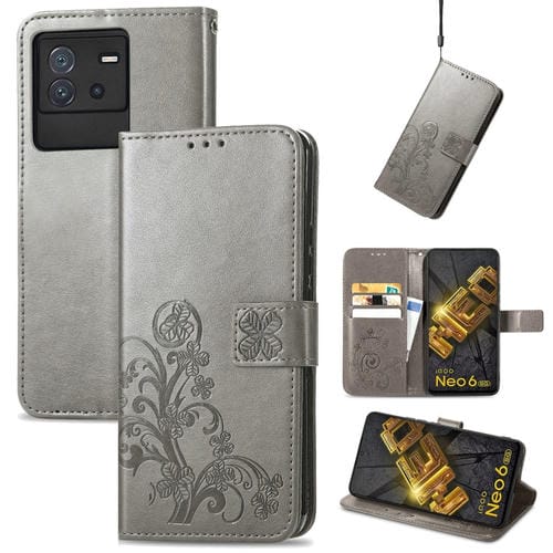 Para Vivo Iqoo Neo6 Estuche para Teléfono de Cuero con Hebilla En Relieve con Cierre de Cuatro Hojas (Gris)