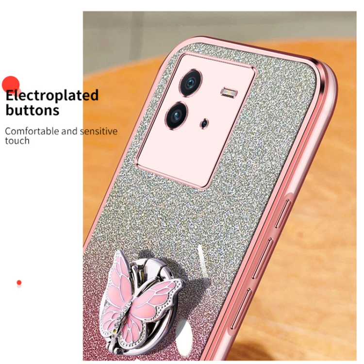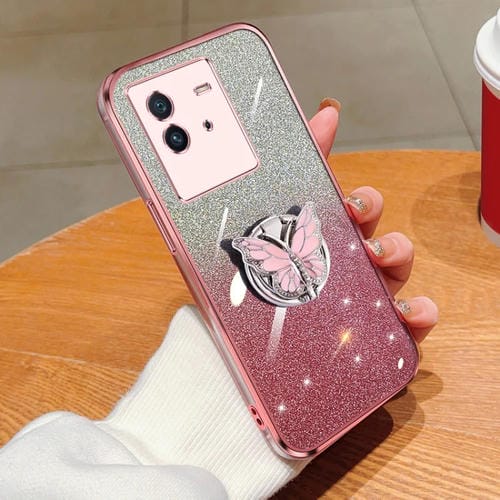 Para Vivo Iqoo Neo6 Funda para Teléfono de TPU con Soporte de Mariposa con Brillo Degradado Plateado (Rosa)