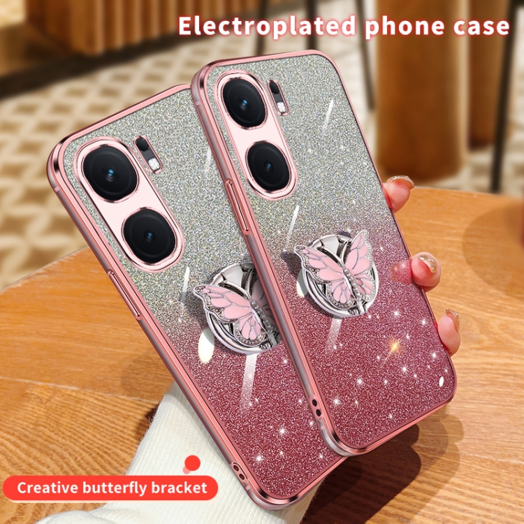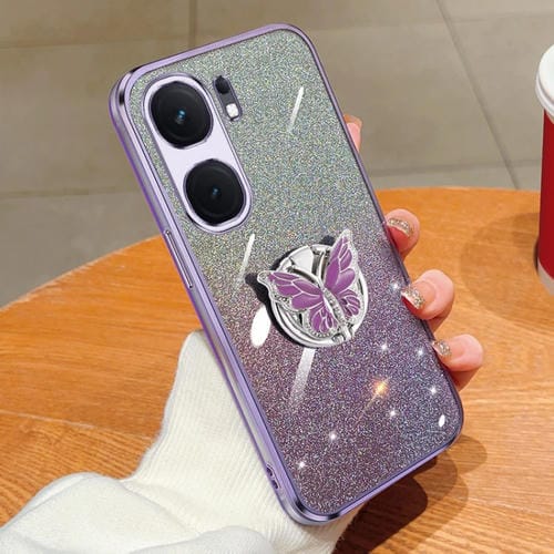Para Vivo Iqoo Neo9 Funda para Teléfono de TPU con Soporte de Mariposa con Brillo Degradado Plateado (Púrpura)