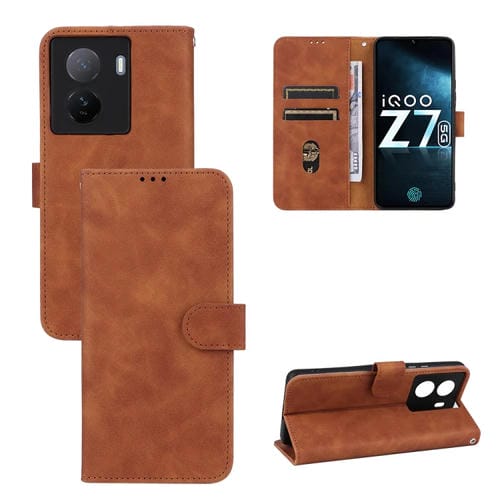 Para Vivo Iqoo Z7 Skin Feel Magnetic Flip Leather Phone Case (Marrón)