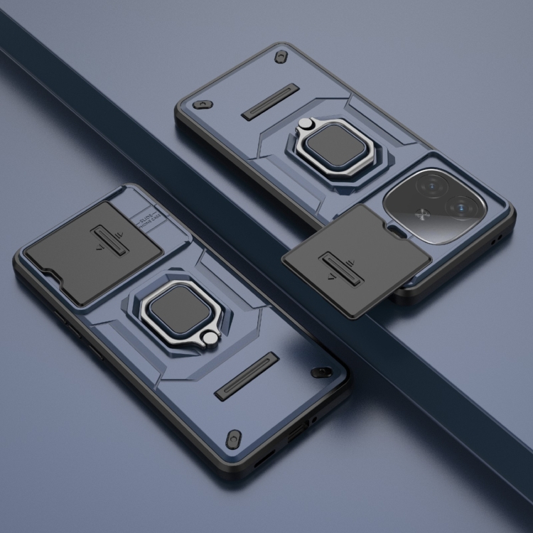 Para Vivo Iqoo Z9 Turbo 5G Sliding Camshield TPU + PC Funda para Teléfono a Prueba de Golpes con Soporte (Azul)