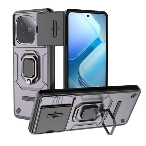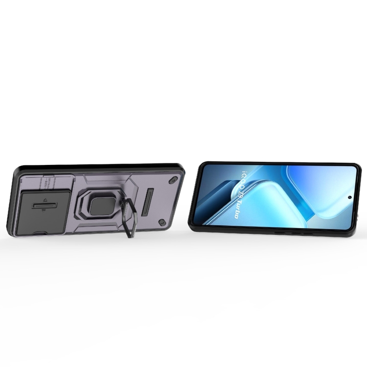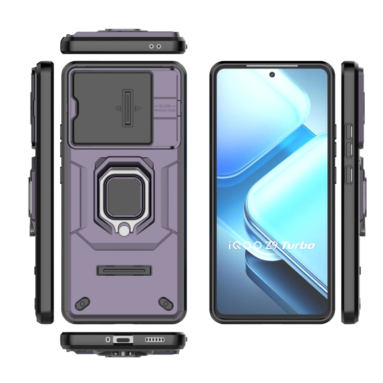 Para Vivo Iqoo Z9 Turbo 5G Sliding Camshield TPU + PC Funda para Teléfono a Prueba de Golpes con Soporte (Púrpura)