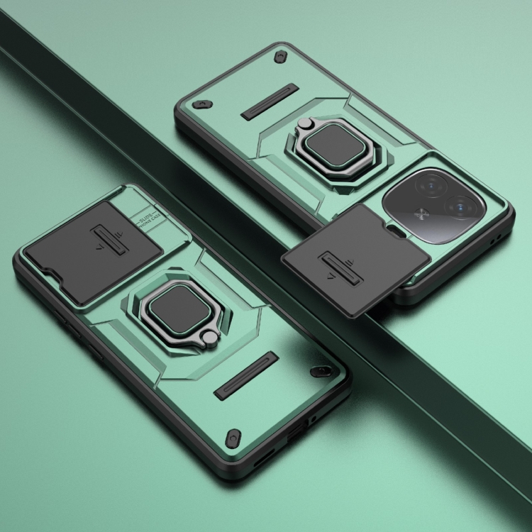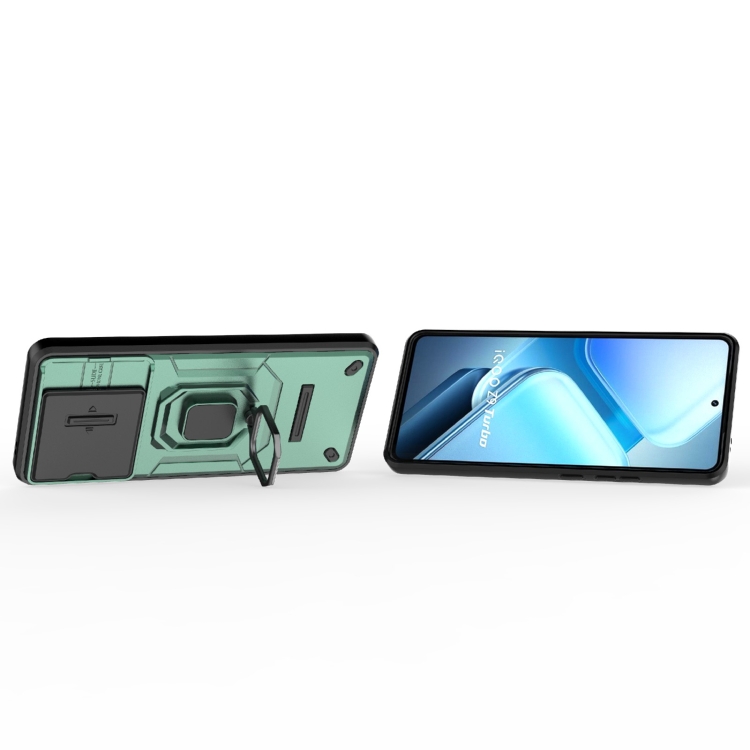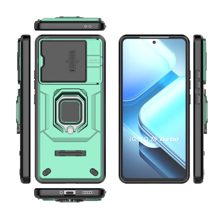 Para Vivo Iqoo Z9 Turbo 5G Sliding Camshield TPU + PC Funda para Teléfono a Prueba de Golpes con Soporte (Verde)