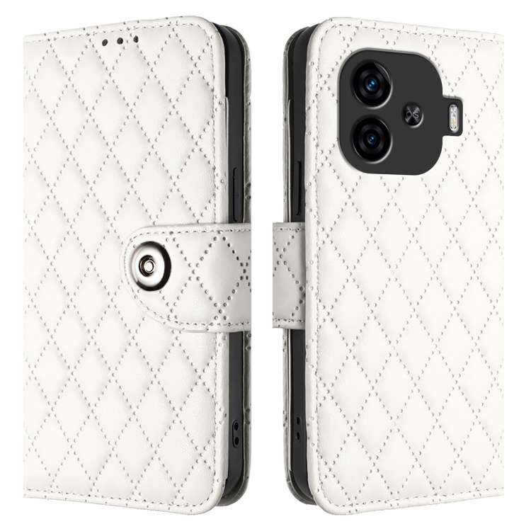 Para Vivo Iqoo Z9 / Z9 Turbo Rhombic Texture Funda de Cuero con Tapa para Teléfono con Cordón (Blanco)