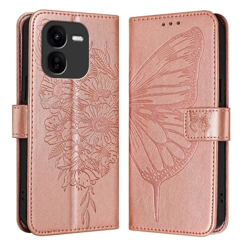 Para Vivo Iqoo Z9X Funda de Cuero con Mariposa En Relieve (Oro Rosa)