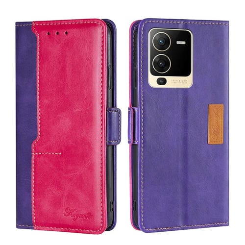 Para Vivo S15 5G Contrast Color Side Hebilla de Cuero Caja de Teléfono (Púrpura + Rosa Roja)