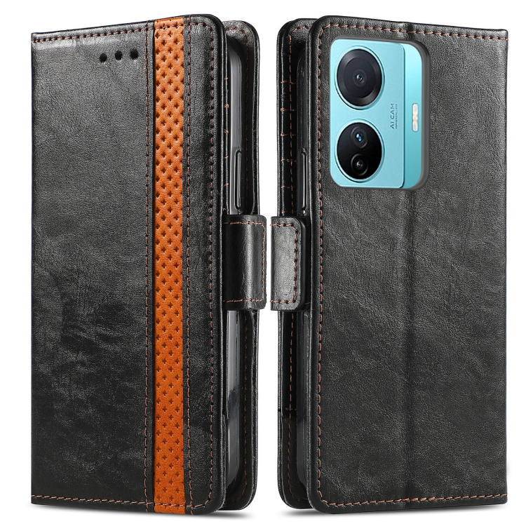Para Vivo S15E Caseneo Splicing Dual Magnetic Buckle Leather Phone Case (Negro)