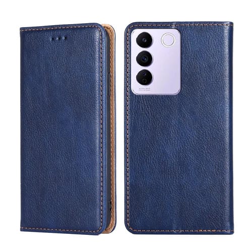 Para Vivo S16E Estuche de Teléfono de Cuero Magnético de Color Sólido con Aceite Brillante (Azul)