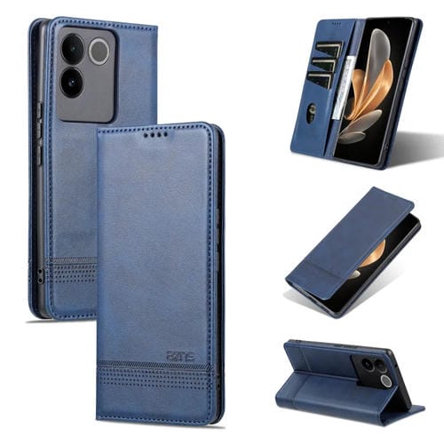 Para Vivo S17E Azns Funda de Teléfono de Cuero con Textura de Becerro Magnético (Azul Oscuro)