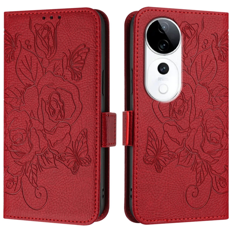 Para Vivo S19 Pro Estuche para Teléfono de Cuero Antirrobo Rfid con Rosa En Relieve (Rojo)