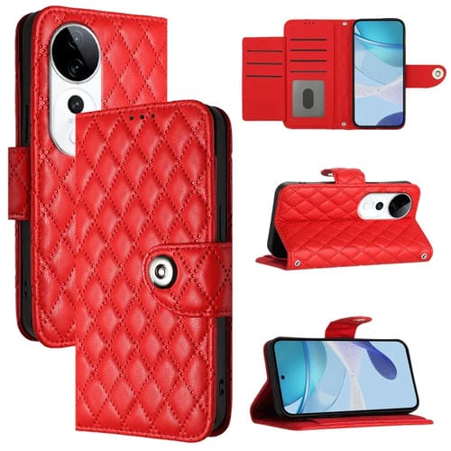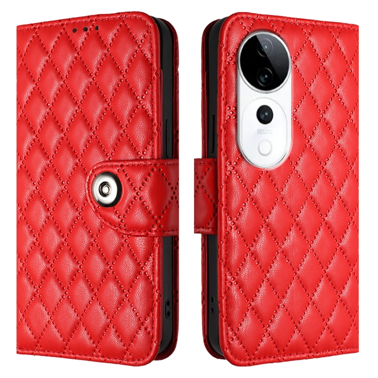 Para Vivo S19 Pro Funda de Cuero con Tapa con Textura Rombal y Cordón (Rojo)