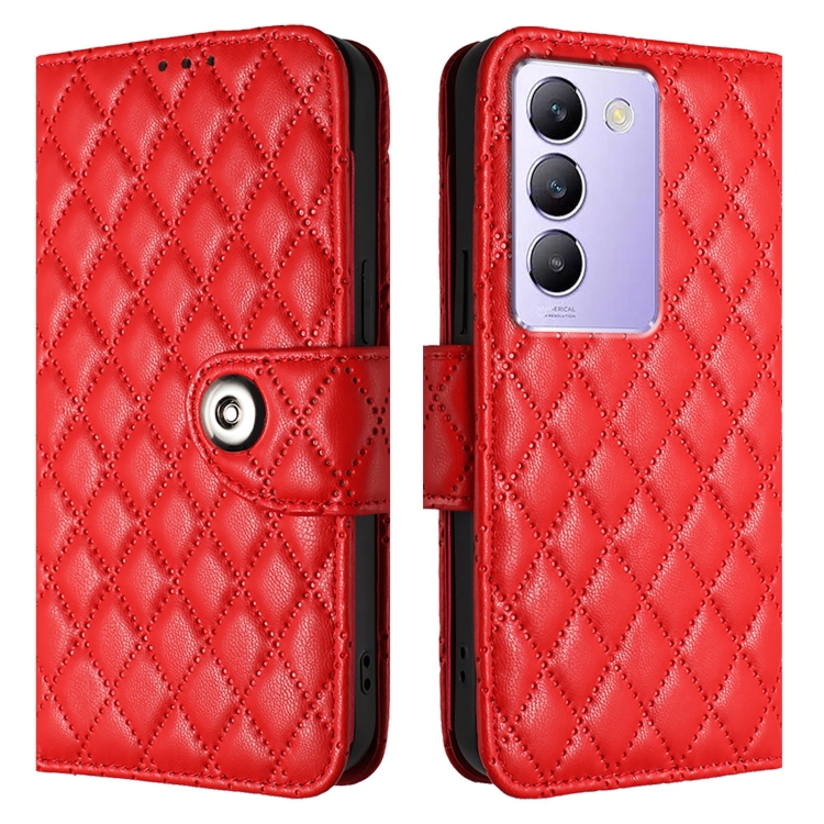 Para Vivo T3 5G Idn / V40 Se Funda para Teléfono con Tapa de Cuero con Textura Rómbica y Cordón (Rojo)