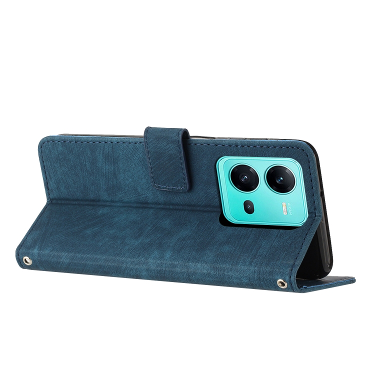 Para Vivo V25 / V25E / X80 Lite Skin Feel Stripe Pattern Funda de Cuero para Teléfono con Cordón (Azul)