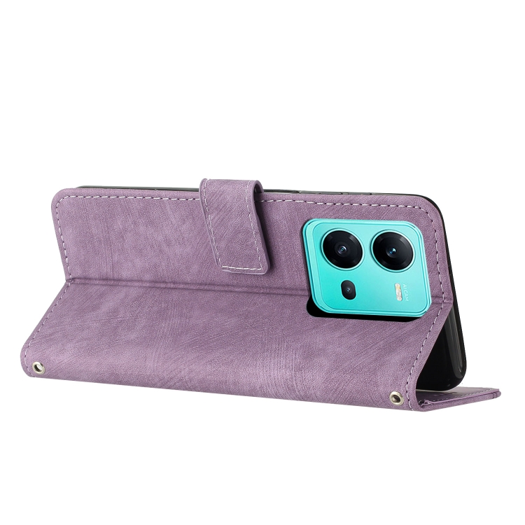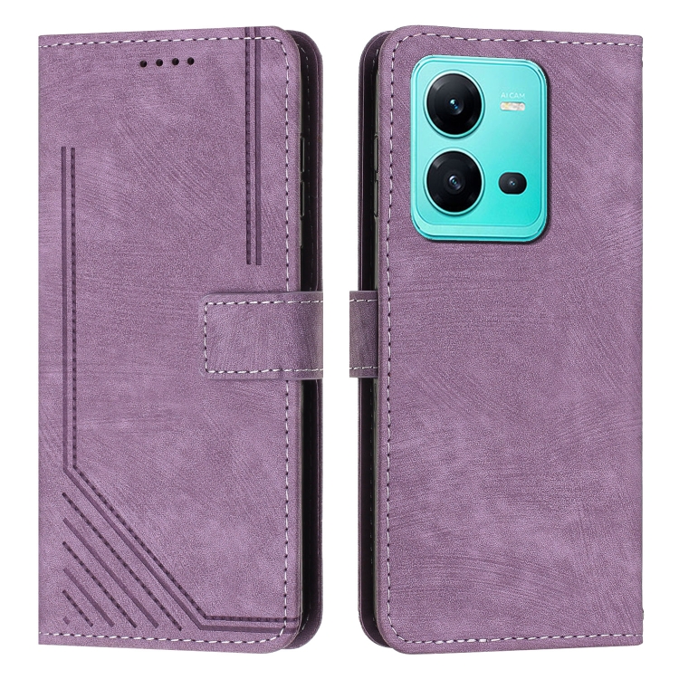 Para Vivo V25 / V25E / X80 Lite Skin Feel Stripe Pattern Funda de Cuero para Teléfono con Cordón (Púrpura)