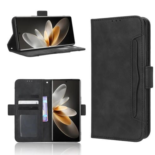 Para Vivo V27 / V27 Pro / S16 / S16 Pro Skin Feel Becerro Textura Ranuras para Tarjetas Funda de Cuero para Teléfono (Negro)