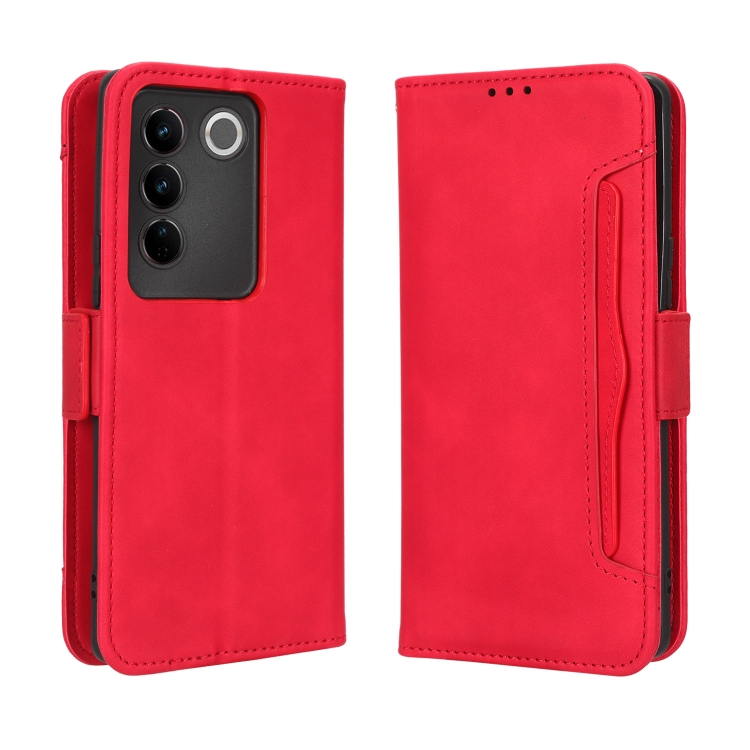 Para Vivo V27 / V27 Pro / S16 / S16 Pro Skin Feel Becerro Textura Ranuras para Tarjetas Funda de Cuero para Teléfono (Rojo)