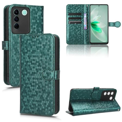 Para Vivo V27E / S16E Funda de Cuero con Textura de Punto de Panal (Verde)