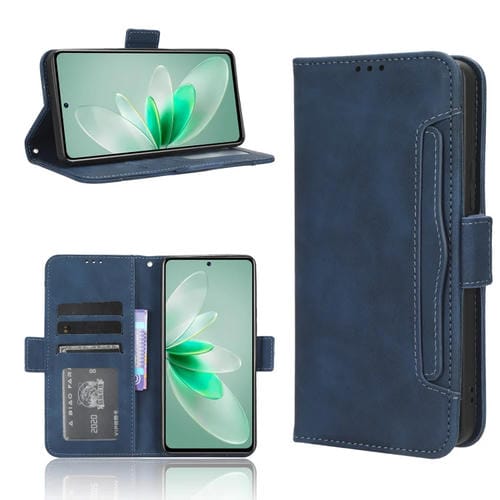 Para Vivo V27E / S16E Skin Feel Becerro Textura Ranuras para Tarjetas Funda de Cuero para Teléfono (Azul)