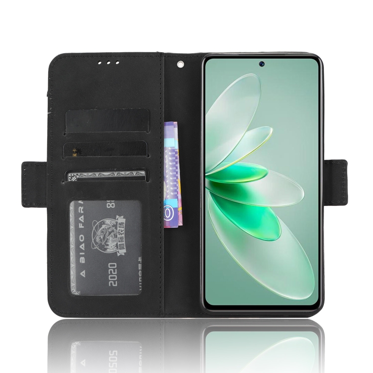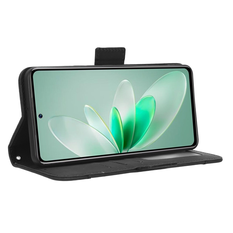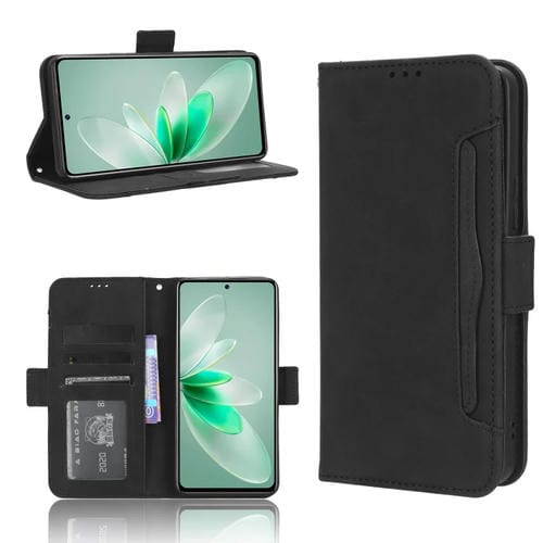 Para Vivo V27E / S16E Skin Feel Becerro Textura Ranuras para Tarjetas Funda de Cuero para Teléfono (Negro)
