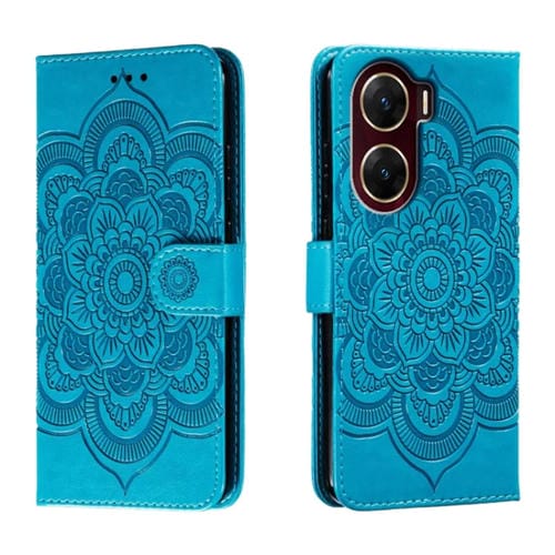 Para Vivo V29E Sun Mandala Funda de Cuero para Teléfono con Patrón En Relieve (Azul)