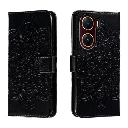 Para Vivo V29E Sun Mandala Funda de Cuero para Teléfono con Patrón En Relieve (Negro)