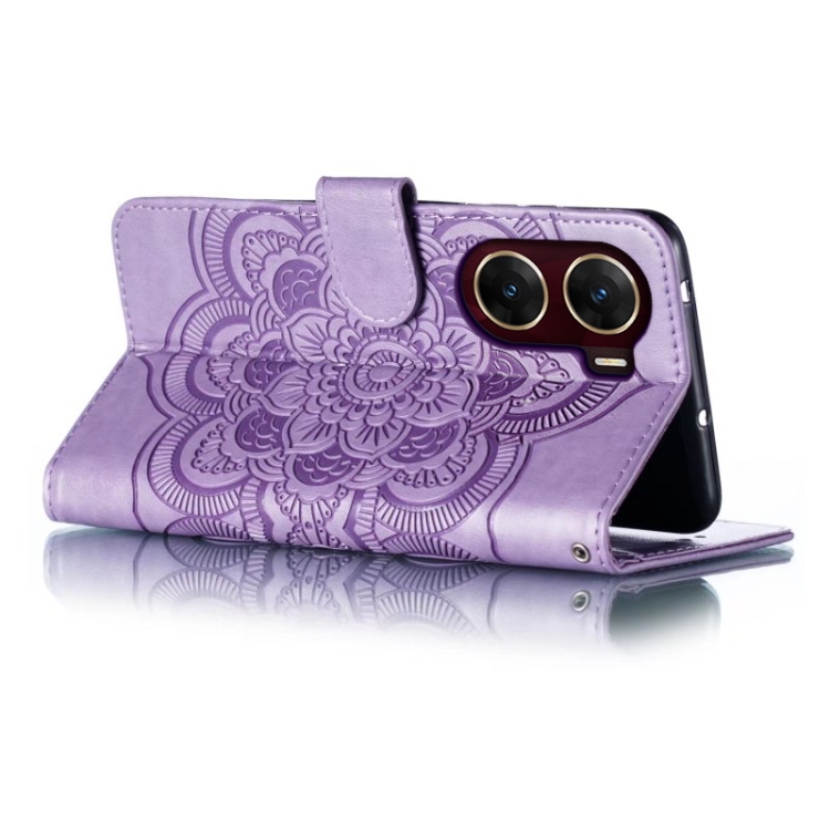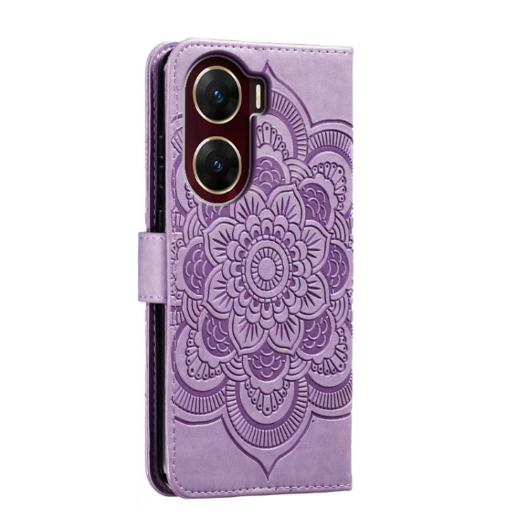 Para Vivo V29E Sun Mandala Funda de Cuero para Teléfono con Patrón En Relieve (Púrpura)