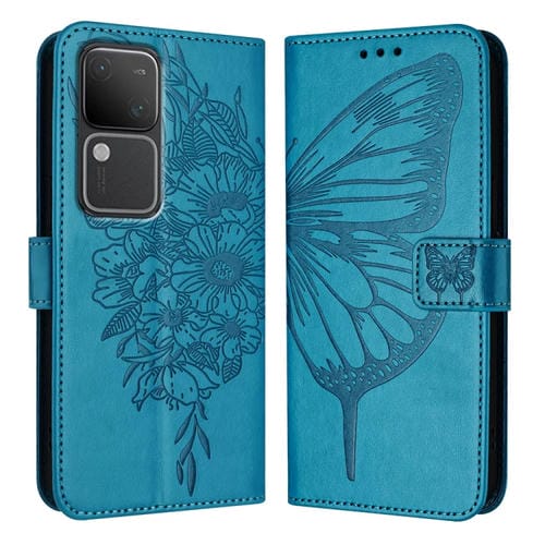 Para Vivo V30 5G / V30 Pro 5G Funda para Teléfono de Cuero con Mariposa En Relieve Global (Azul)