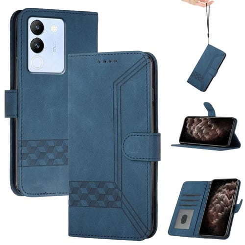 Para Vivo V30 Lite 5G Global Cubic Skin Feel Funda de Cuero con Tapa para Teléfono (Azul)