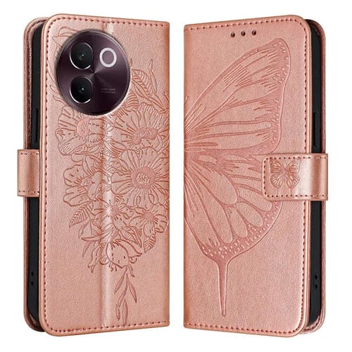 Para Vivo V30E 5G Funda para Teléfono de Cuero con Mariposa En Relieve Global (Oro Rosa)