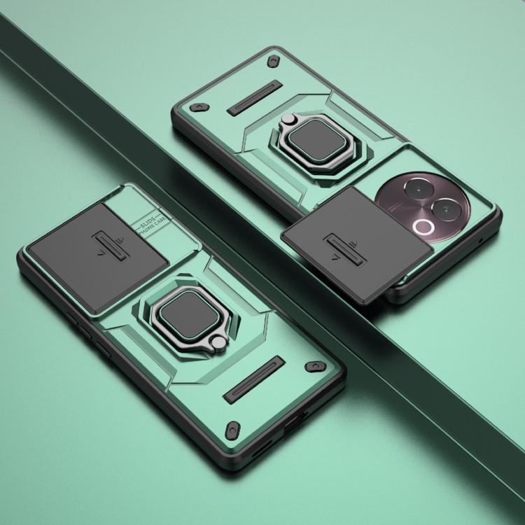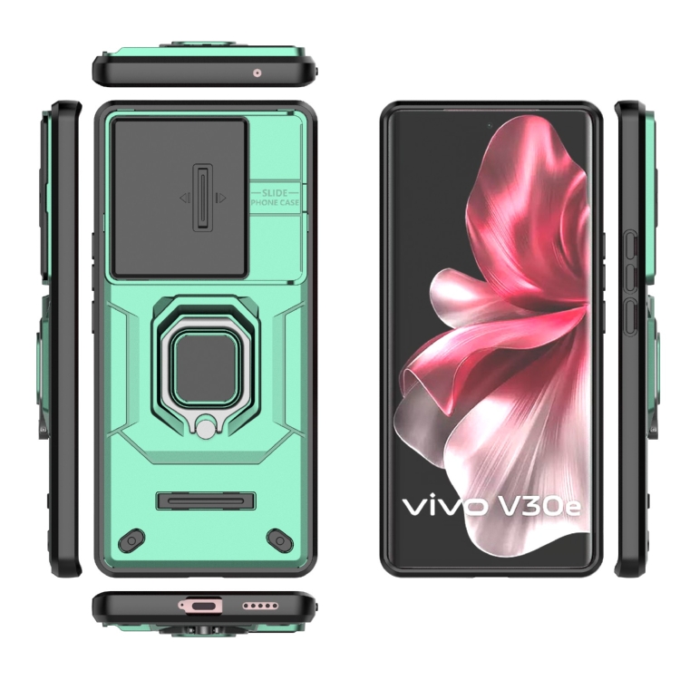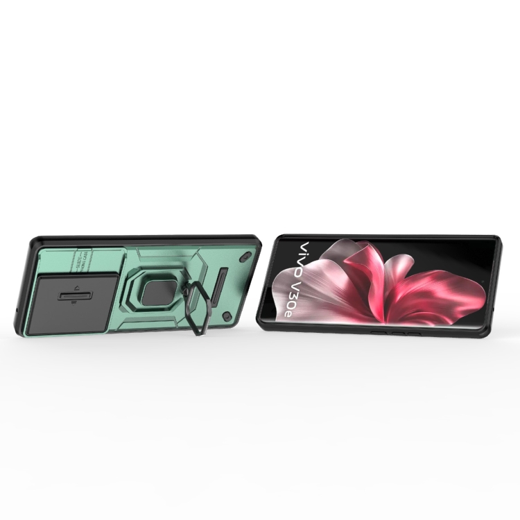 Para Vivo V30E 5G Global Sliding Camshield TPU + PC Funda para Teléfono a Prueba de Golpes con Soporte (Verde)