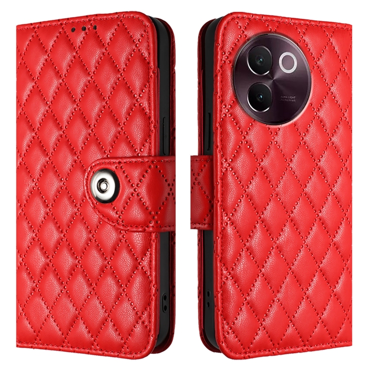 Para Vivo V30E Funda para Teléfono de Cuero con Tapa con Textura Rómbica y Cordón (Rojo)