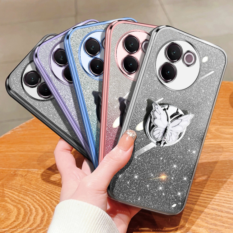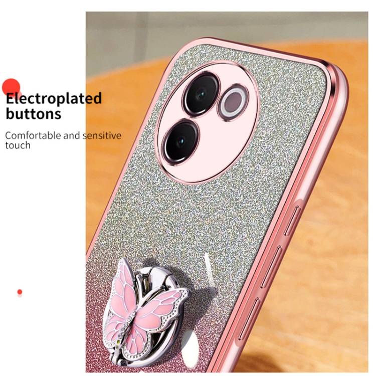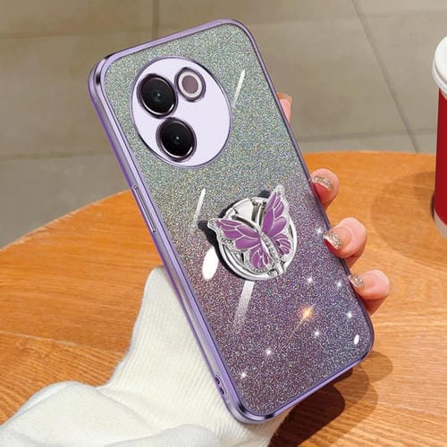 Para Vivo V30E Funda para Teléfono de TPU con Soporte de Mariposa con Brillo Degradado Plateado (Púrpura)